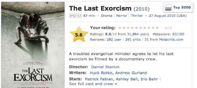 The poster look epic! But is so under rating. Really not nice meh? But I like the idea of exorcism, probably affect by The Conjuring. Too bad it's not the real footage. They just make it like it's real. But I would like to give this movie a chance. They have The Last Exorcism 2 just released this year too! Gonna watch both at one shot.